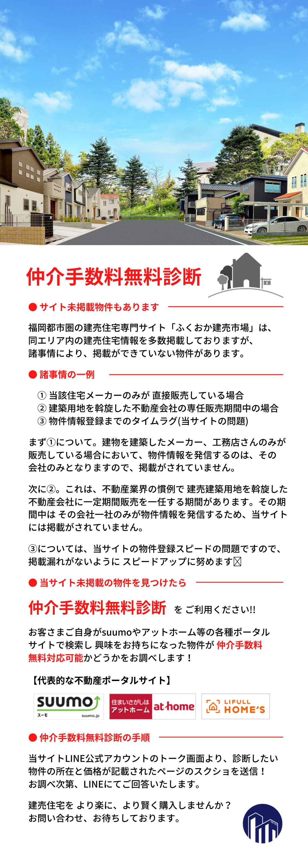 福岡市の建売|ふくおか建売市場 > 株式会社メイヴスのスタッフブログ記事一覧 > 仲介手数料無料診断
